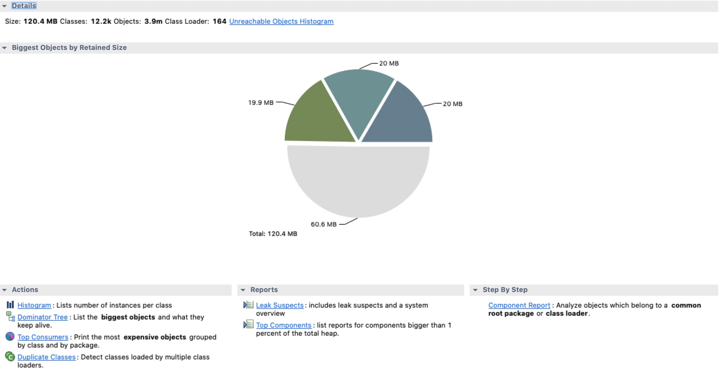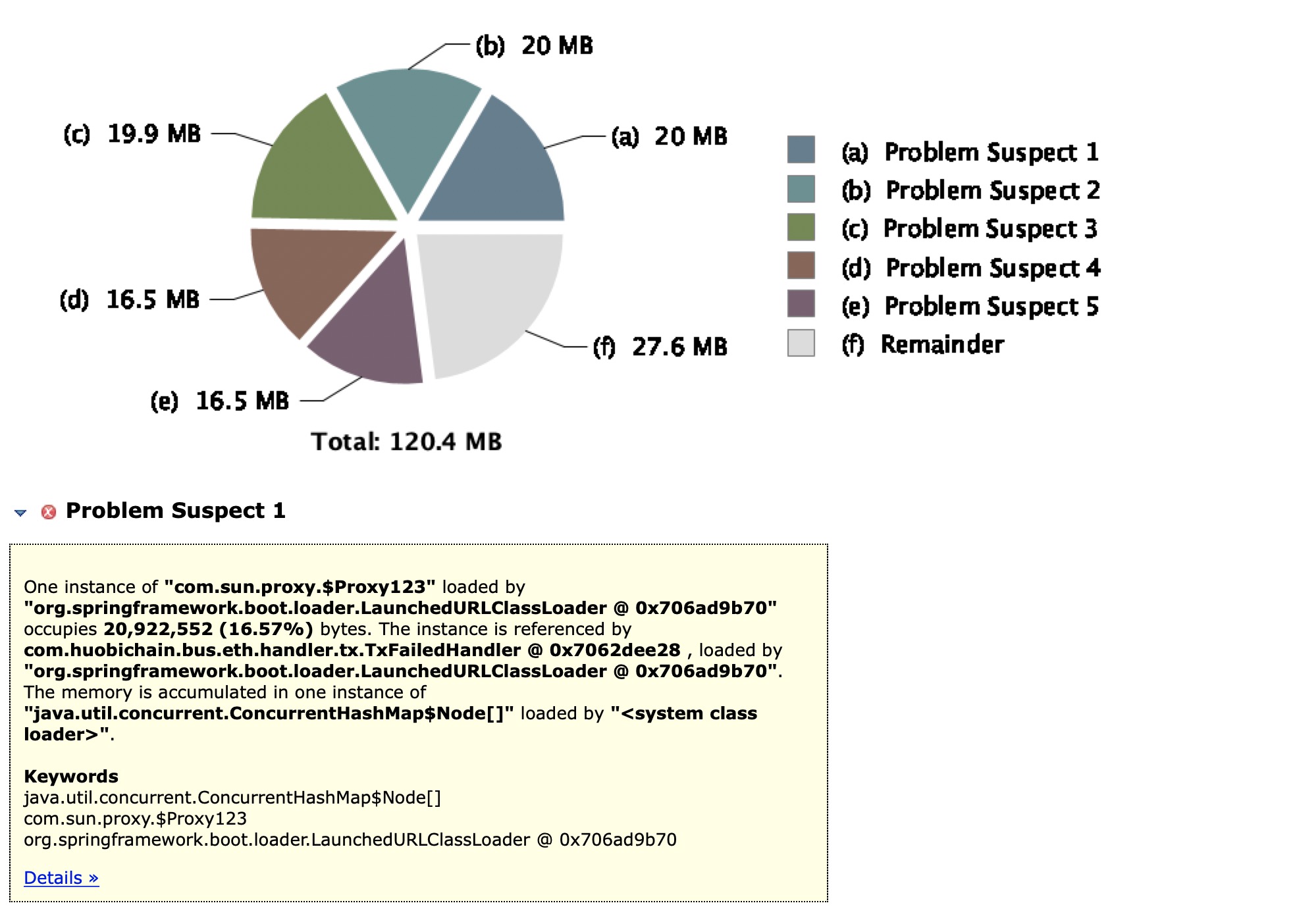 来进行内存泄漏分析,等待大概几十秒后,得到如下信息: